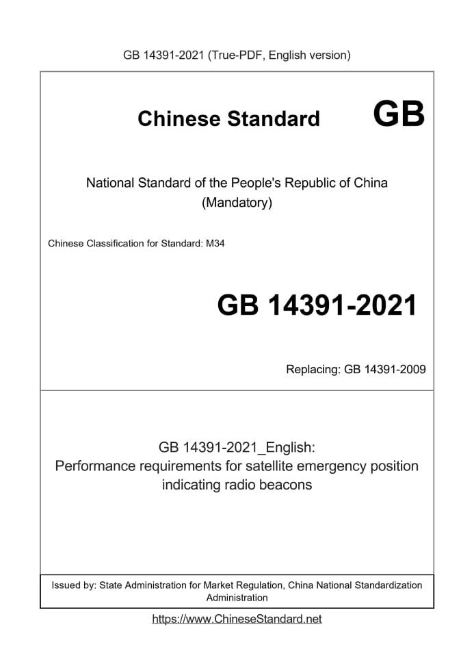 Delivery: <= 4 days. True-PDF full-copy in English will be manually translated and delivered via email. GB 14391-2021: Performance requirements for satellite emergency position indicating radio beacons Status: Valid GB 14391: Historical versions