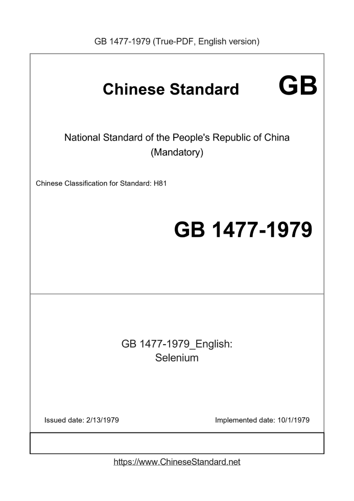 Delivery: <= 2 days. True-PDF full-copy in English will be manually translated and delivered via email. GB 1477-1979: Selenium Status: Obsolete