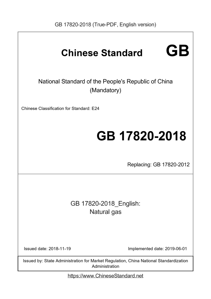 Delivery: <= 1 days. True-PDF full-copy in English will be manually translated and delivered via email. GB 17820-2018: Natural gas Status: Valid GB 17820: Historical versions