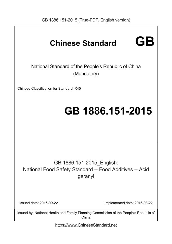 GB 1886.151-2015: National Food Safety Standard -- Food Additives -- Acid geranyl
