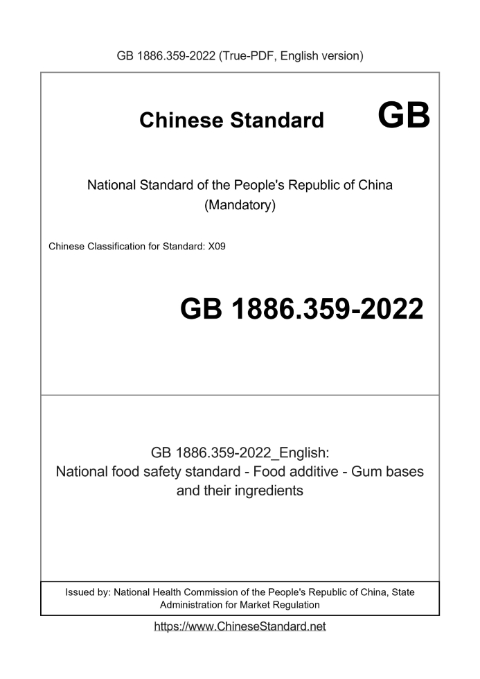 Delivery: <= 7 days. True-PDF full-copy in English will be manually translated and delivered via email. GB 1886.359-2022: National food safety standard - Food additive - Gum bases and their ingredients Status: Valid