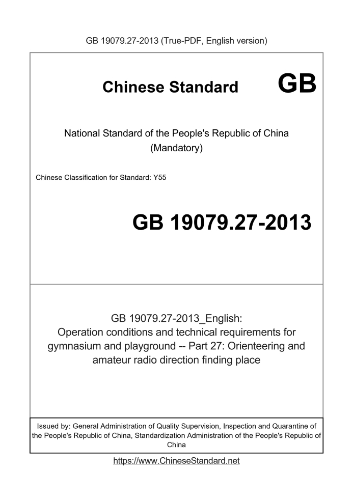 GB 19079.27-2013: Operation conditions and technical requirements for gymnasium and playground -- Part 27: Orienteering and amateur radio direction finding place