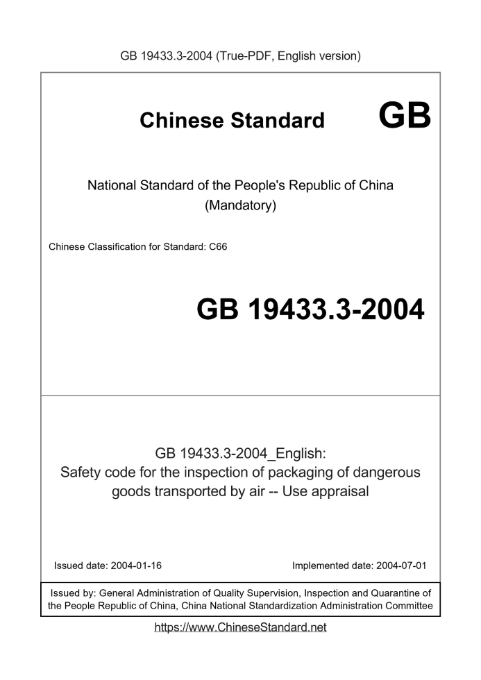 GB 19433.3-2004: Safety code for the inspection of packaging of dangerous goods transported by air -- Use appraisal