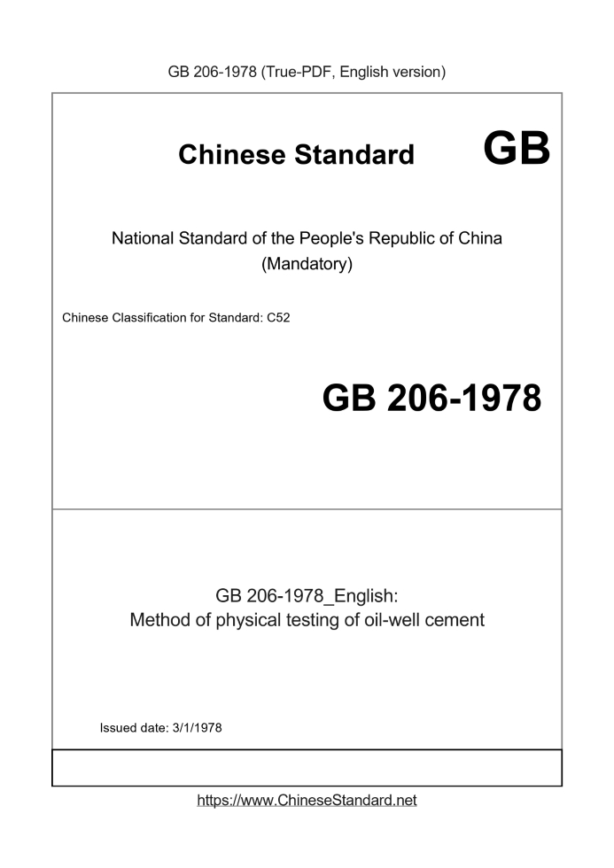 Basic dataStandard ID: GB 206-1978 (GB206-1978)Description (Translated English): Method of physical testing of oil-well cement Sector / Industry: National Standard Classification of Chinese Standard: C52 Date of Issue: 3/1/1978 Tips & Frequently Asked Questions:Question 1: How long will the true-PDF of GB 206-1978_English be delivered?Answer: Upon your order, we will start to translate GB 206-1978_English as soon as possible, and keep you informed of the progress. The lead time is typically 1 ~ 3 working days. The lengthier the document the longer the lead time.Question 2: Can I share the purchased PDF of GB 206-1978_English with my colleagues?Answer: Yes. The purchased PDF of GB 206-1978_English will be deemed to be sold to your employer/organization who actually pays for it, including your colleagues and your employer's intranet.Question 3: Does the price include tax/VAT?Answer: Yes. Our tax invoice, downloaded/delivered in 9 seconds, includes all tax/VAT and complies with 100+ countries' tax regulations (tax exempted in 100+ countries) -- See Avoidance of Double Taxation Agreements (DTAs): List of DTAs signed between Singapore and 100+ countriesQuestion 4: Do you accept my currency other than USD?Answer: Yes. If you need your currency to be printed on the invoice, please write an email to Sales@ChineseStandard.net. In 2 working-hours, we will create a special link for you to pay in any currencies. Otherwise, follow the normal steps: Add to Cart -- Checkout -- Select your currency to pay. |