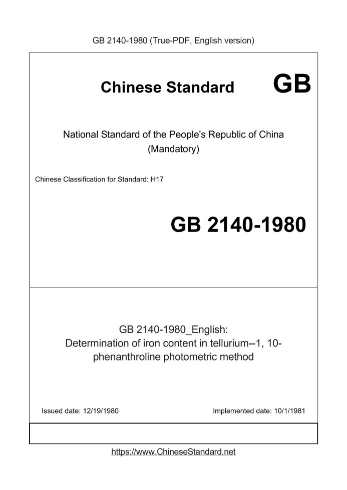 GB 2140-1980: Determination of iron content in tellurium--1, 10-phenanthroline photometric method