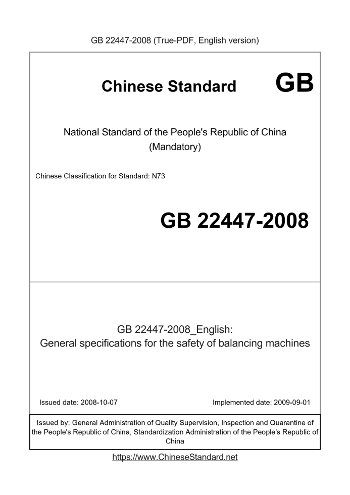 Delivery: <= 3 days. True-PDF full-copy in English will be manually translated and delivered via email. GB 22447-2008: General specifications for the safety of balancing machines Status: Obsolete