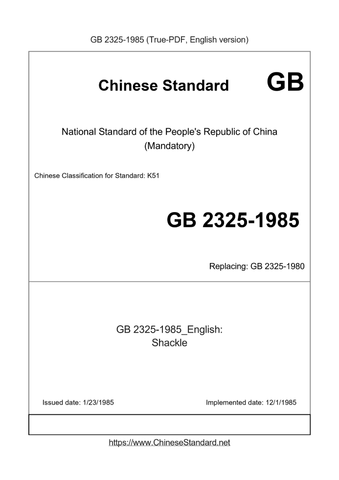 Delivery: <= 2 days. True-PDF full-copy in English will be manually translated and delivered via email. GB 2325-1985: Shackle Status: Obsolete