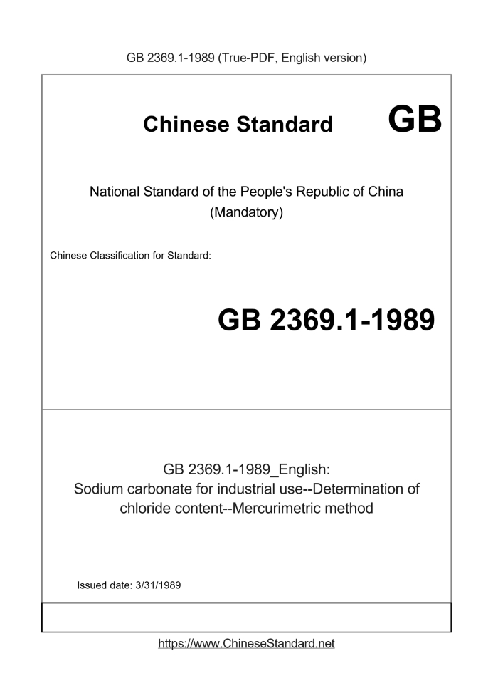 GB 2369.1-1989RFQ ASK 3 days Sodium carbonate for industrial use--Determination of chloride content--Mercurimetric method Obsolete