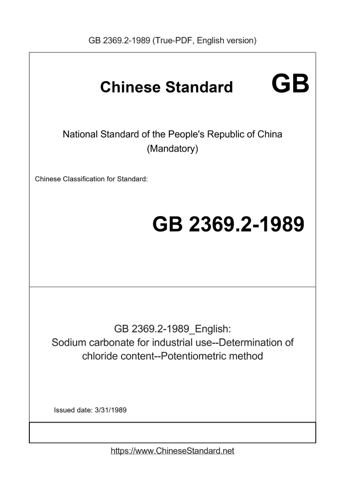 GB 2369.2-1989RFQ ASK 3 days Sodium carbonate for industrial use--Determination of chloride content--Potentiometric method Obsolete