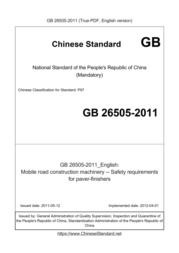 US$489.00 · In stock · Download in 9 secondsGB 26505-2011: Mobile road construction machinery -- Safety requirements for paver-finishers