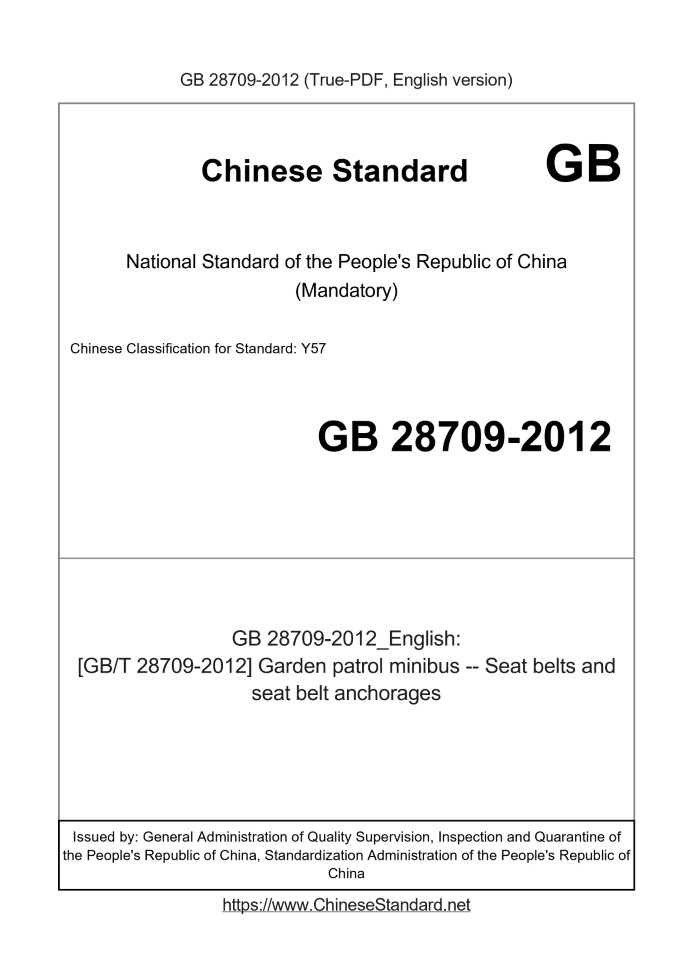 Delivery: <= 3 days. True-PDF full-copy in English will be manually translated and delivered via email. GB 28709-2012: [GB/T 28709-2012] Garden patrol minibus -- Seat belts and seat belt anchorages Status: Valid