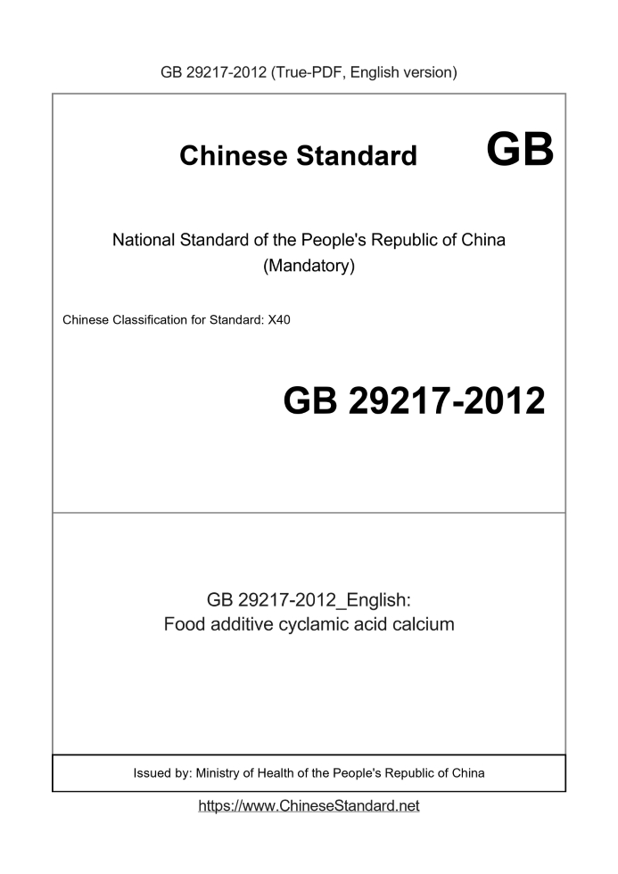 GB 29217-2012: Food additive cyclamic acid calcium