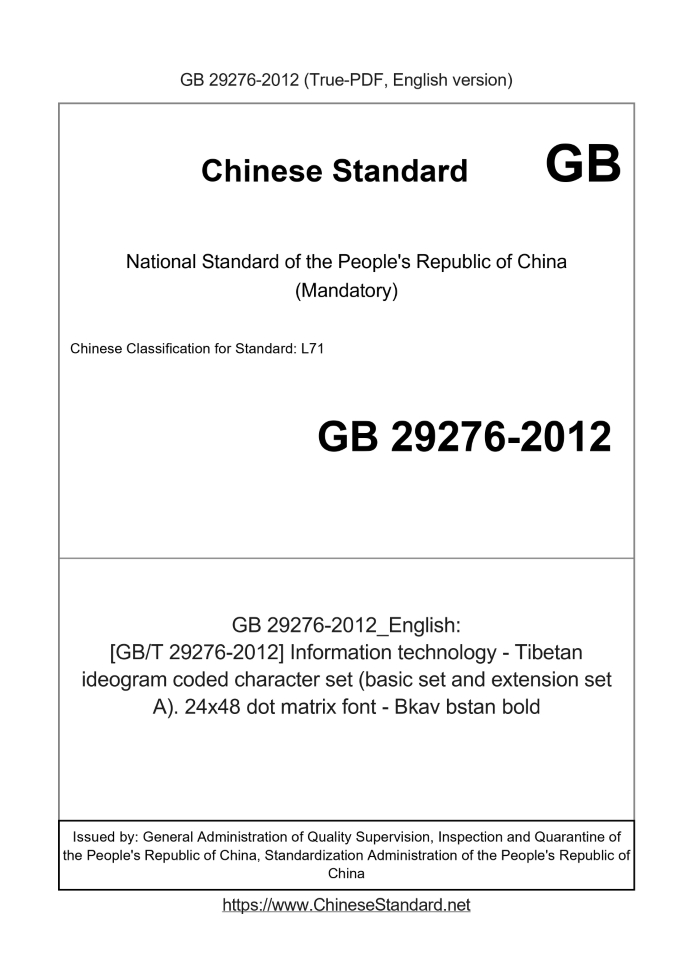 GB 29276-2012: [GB/T 29276-2012] Information technology - Tibetan ideogram coded character set (basic set and extension set A). 24x48 dot matrix font - Bkav bstan bold