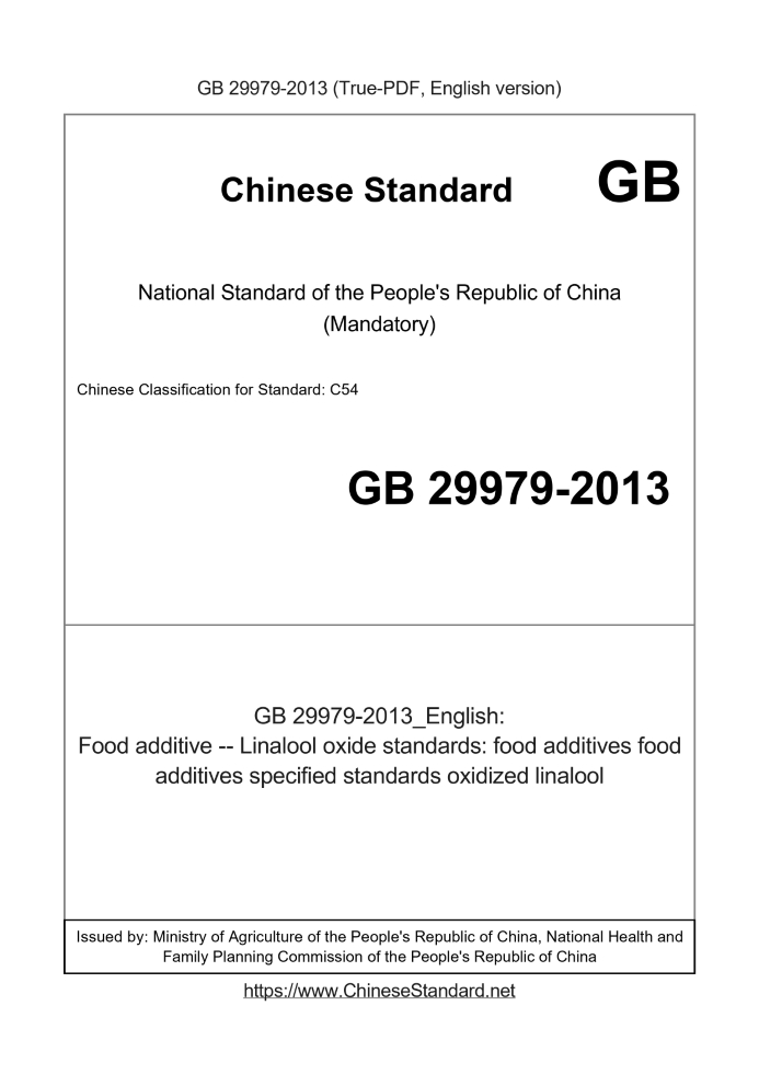 Standard ID: GB 29979-2013 (GB29979-2013)Description (Translated English): Food additive -- Linalool oxide standards: food additives food additives specified standards oxidized linalool