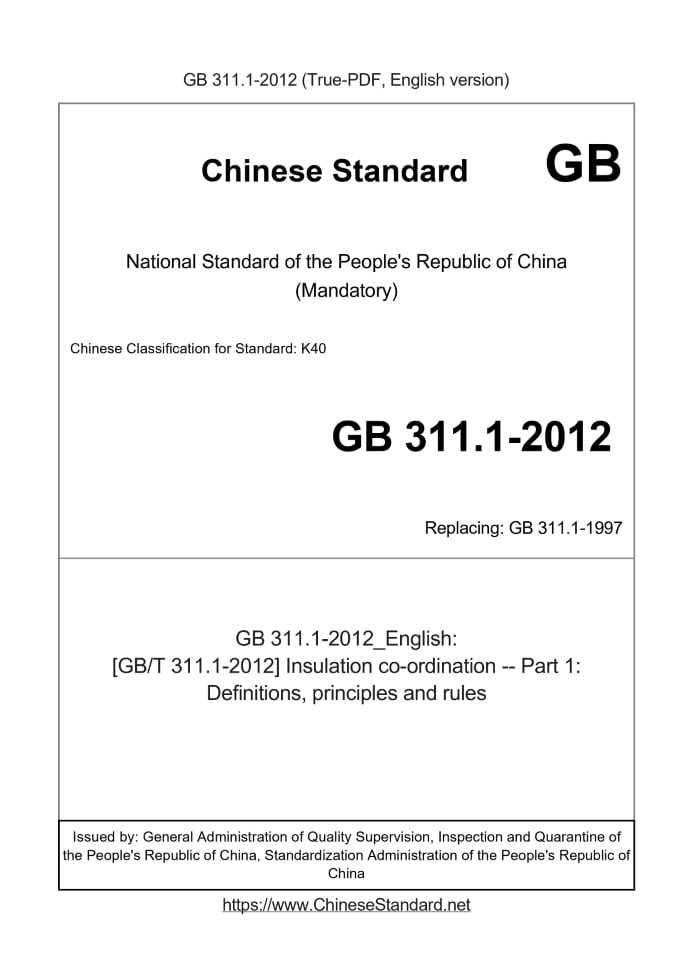 Description (Translated English): [GB/T 311.1-2012] Insulation co-ordination -- Part 1: Definitions, principles and rules