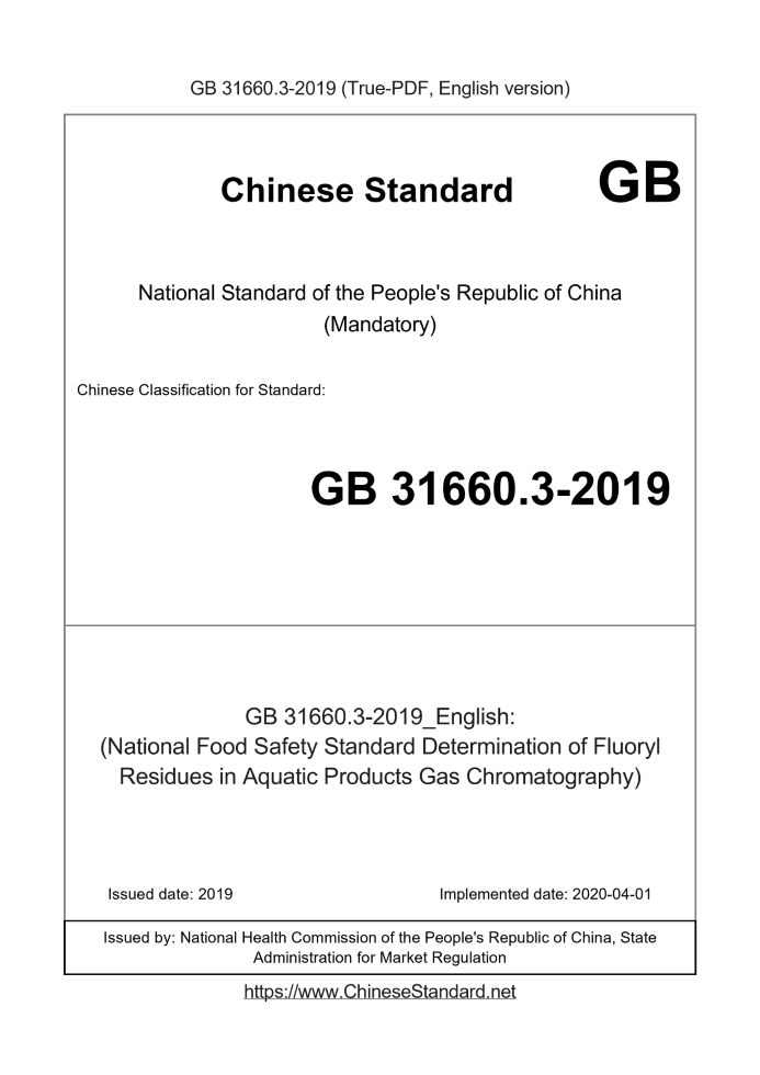 GB 31660.3-2019: (National Food Safety Standard Determination of Fluoryl Residues in Aquatic Products Gas Chromatography)
