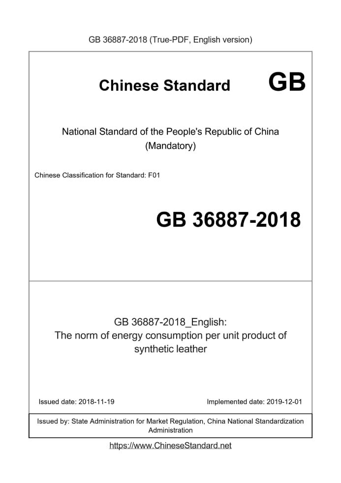 GB 36887-2018: The norm of energy consumption per unit product of synthetic leather