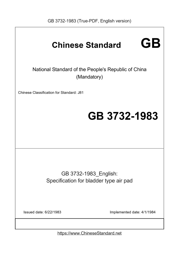 GB 3732-1983: Specification for bladder type air pad
