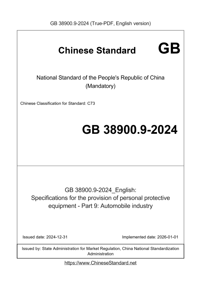 Basic dataStandard ID: GB 38900.9-2024 (GB38900.9-2024)Description (Translated English): Specifications for the provision of personal protective equipment - Part 9: Automobile industry Sector / Industry: National Standard Classification of Chinese Standard: C73 Classification of International Standard: 13.340.01 Date of Issue: 2024-12-31 Date of Implementation: 2026-01-01 Issuing agency(ies): State Administration for Market Regulation, China National Standardization Administration Tips & Frequently Asked Questions:Question 1: How long will the true-PDF of GB 38900.9-2024_English be delivered?Answer: Upon your order, we will start to translate GB 38900.9-2024_English as soon as possible, and keep you informed of the progress. The lead time is typically 1 ~ 3 working days. The lengthier the document the longer the lead time.Question 2: Can I share the purchased PDF of GB 38900.9-2024_English with my colleagues?Answer: Yes. The purchased PDF of GB 38900.9-2024_English will be deemed to be sold to your employer/organization who actually pays for it, including your colleagues and your employer's intranet.Question 3: Does the price include tax/VAT?Answer: Yes. Our tax invoice, downloaded/delivered in 9 seconds, includes all tax/VAT and complies with 100+ countries' tax regulations (tax exempted in 100+ countries) -- See Avoidance of Double Taxation Agreements (DTAs): List of DTAs signed between Singapore and 100+ countriesQuestion 4: Do you accept my currency other than USD?Answer: Yes. If you need your currency to be printed on the invoice, please write an email to Sales@ChineseStandard.net. In 2 working-hours, we will create a special link for you to pay in any currencies. Otherwise, follow the normal steps: Add to Cart -- Checkout -- Select your currency to pay. |