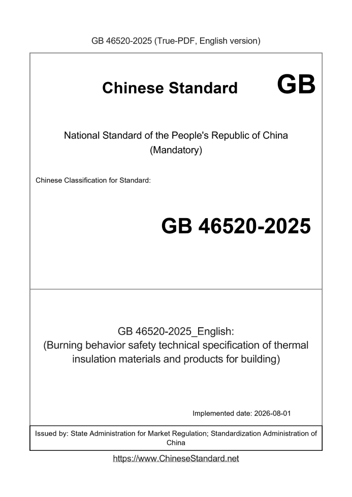 Basic dataStandard ID: GB 46520-2025 (GB46520-2025)Description (Translated English): (Burning behavior safety technical specification of thermal insulation materials and products for building) Sector / Industry: National Standard Date of Implementation: 2026-08-01 Issuing agency(ies): State Administration for Market Regulation; Standardization Administration of China Tips & Frequently Asked Questions:Question 1: How long will the true-PDF of GB 46520-2025_English be delivered?Answer: Upon your order, we will start to translate GB 46520-2025_English as soon as possible, and keep you informed of the progress. The lead time is typically 1 ~ 3 working days. The lengthier the document the longer the lead time.Question 2: Can I share the purchased PDF of GB 46520-2025_English with my colleagues?Answer: Yes. The purchased PDF of GB 46520-2025_English will be deemed to be sold to your employer/organization who actually pays for it, including your colleagues and your employer's intranet.Question 3: Does the price include tax/VAT?Answer: Yes. Our tax invoice, downloaded/delivered in 9 seconds, includes all tax/VAT and complies with 100+ countries' tax regulations (tax exempted in 100+ countries) -- See Avoidance of Double Taxation Agreements (DTAs): List of DTAs signed between Singapore and 100+ countriesQuestion 4: Do you accept my currency other than USD?Answer: Yes. If you need your currency to be printed on the invoice, please write an email to Sales@ChineseStandard.net. In 2 working-hours, we will create a special link for you to pay in any currencies. Otherwise, follow the normal steps: Add to Cart -- Checkout -- Select your currency to pay. |