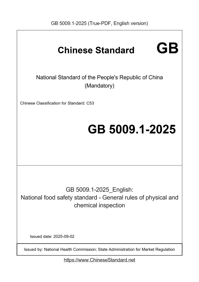 Delivery: <= 3 days. True-PDF full-copy in English will be manually translated and delivered via email. GB 5009.1-2025: National food safety standard - General rules of physical and chemical inspection Status: Valid GB 5009.1: Historical versions