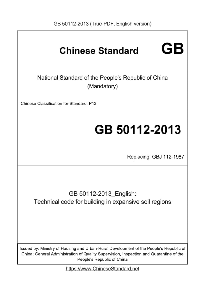 Basic dataStandard ID: GB 50112-2013 (GB50112-2013)Description (Translated English): Technical code for building in expansive soil regions Sector / Industry: National Standard Classification of Chinese Standard: P13 Classification of International Standard: 93.020 Word Count Estimation: 130,154 Older Standard (superseded by this standard): GBJ 112-1987 Quoted Standard: GB 50007; GB 50021; GB 50026; GB 50153; GB 50292; JGJ 8; JGJ 94 Regulation (derived from): Bulletin of the Ministry of Housing and Urban-Rural Development 1587 Issuing agency(ies): Ministry of Housing and Urban-Rural Development of the People's Republic of China; General Administration of Quality Supervision, Inspection and Quarantine of the People's Republic of China Summary: This standard applies to the expansion of land area construction survey, design, construction and maintenance management. GB 50112-2013: Technical code for building in expansive soil regions---This is a DRAFT version for illustration, not a final translation. Full copy of true-PDF in English version (including equations, symbols, images, flow-chart, tables, and figures etc.) will be manually/carefully translated upon your order.1 General 1.0.1 This specification is formulated in order to implement the national technical and economic policies in construction projects in expansive soil areas, to achieve safety and applicability, advanced technology, reasonable economy, and environmental protection. 1.0.2 This code is applicable to survey, design, construction and maintenance management of construction projects in expansive soil areas. 1.0.3 For engineering construction in expansive soil areas, according to the characteristics of expansive soil and engineering requirements, factors such as topographical conditions, climate characteristics, and changes in soil moisture should be considered comprehensively, local experience should be emphasized, and prevention and control measures should be taken according to local conditions. 1.0.4 The survey, design, construction and maintenance management of construction projects in expansive soil areas shall not only comply with this specification, but also comply with relevant current national standards. 2 Terms and symbols 2.1 Terminology 2.1.1 expansive soil The clay component in the soil is mainly composed of hydrophilic minerals, and it is a cohesive soil that has two deformation characteristics of water absorption expansion and water loss shrinkage. 2.1.2 free swelling ratio After the artificially prepared dry loose soil sample swells and stabilizes in water, the percentage of its volume increase to the original volume. 2.1.3 swelling potential A measure of the expansion-contraction deformation, or expansion force, that an expansive soil may produce when environmental conditions change. 2.1.4 swelling ratio The percentage of the ratio of the height increase value to the original height of the ring-knife soil sample in the consolidation instrument after it is soaked in water and swells under a certain pressure. 2.1.5 swelling force swelling force The maximum internal stress produced by the water-soaked soil sample in the consolidation instrument when the volume remains constant. 2.1.6 value of swelling deformation Under a certain pressure, the deformation amount of expansive soil after absorbing water and expanding and stabilizing. 2.1.7 linear shrinkage ratio The ratio of the height reduction value to the original height of the ring knife soil sample under natural humidity after drying or air-drying. 2.1.8 coefficient of shrinkage coefficient of shrinkage The vertical linear shrinkage rate of the ring knife soil sample when the water content decreases by 1% in the linear shrinkage stage. 2.1.9 value of shrinkage deformation The amount of deformation of expansive soil after dehydration shrinkage is stabilized. 2.1.10 value of swelling-shrinkage deformation The total deformation of expansive soil after water absorption and water loss shrinkage are stabilized. 2.1.11 grade of swelling-shrinkage The foundation evaluation index of the influence degree of expansion and contraction deformation of expansive soil foundation on low-rise buildings. 2.1.12 Atmospheric influence depth climate influenced layer Under the influence of natural climate, the effective depth of expansion and contraction deformation of foundation soil caused by factors such as precipitation, evaporation and temperature. 2.1.13 climate influenced markedly layer Atmospheric effects are particularly pronounced at depth. 2.2 Symbols 2.2.1 Actions and action effects Pe - expansive force of soil; pk—corresponding to the standard combination of load effects, the average pressure value at the bottom of the foundation; pkmax——the maximum pressure value at the edge of the bottom surface of the foundation when the standard combination of load effects is applied; Qk—corresponding to the standard combination of load effects, the vertical force acting on the top of the pile under the most unfavorable working conditions; sc——gradient deformation of foundation; se - expansion and deformation of foundation soil; ses - expansion and contraction deformation of foundation soil; ss—shrinkage and deformation of foundation soil; νe——Standard value of the maximum expansion and pullout force of the side soil of the pile in the layer with severe atmospheric influence. 2.2.2 Material properties and resistance fa——modified characteristic value of foundation bearing capacity; fak — characteristic value of foundation bearing capacity; qsa - characteristic value of lateral resistance of the pile; qpa——the end resistance characteristic value of the pile; ω1——the natural water content of the soil at 1m below the surface; ωp——the plastic limit water content of soil; γm —weighted average weight of the soil above the bottom surface of the foundation; δef ——free expansion rate of soil; δep—expansion rate of expansive soil under a certai