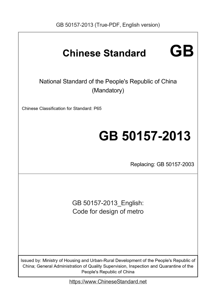 Delivery: <= 15 days. True-PDF full-copy in English will be manually translated and delivered via email. GB 50157-2013: Code for design of metro Status: Valid GB 50157: Historical versions
