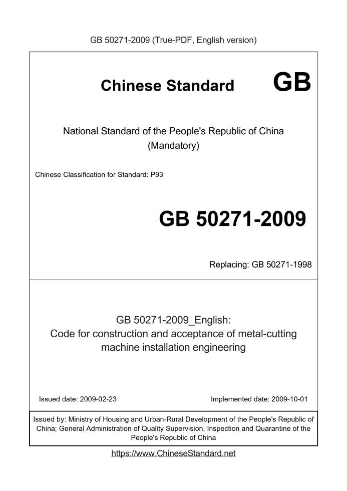 GB 50271-2009: Code for construction and acceptance of metal-cutting machine installation engineering