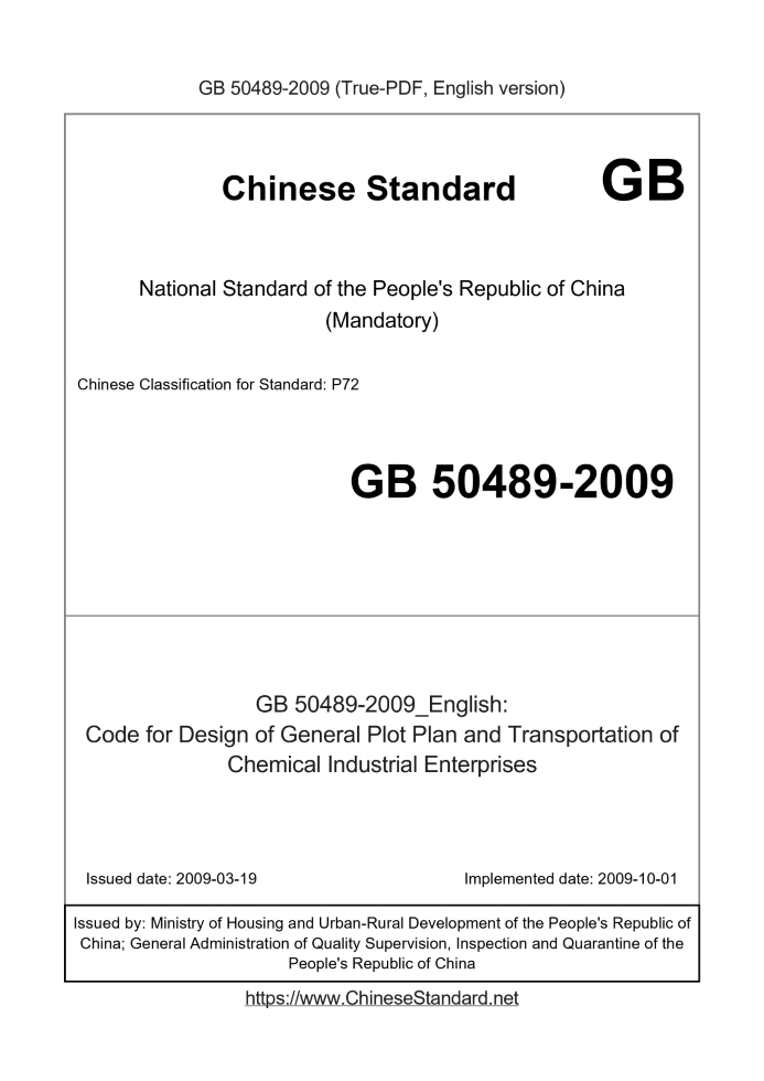 Basic dataStandard ID: GB 50489-2009 (GB50489-2009)Description (Translated English): Code for Design of General Plot Plan and Transportation of Chemical Industrial Enterprises Sector / Industry: National Standard Classification of Chinese Standard: P72 Classification of International Standard: 71.010 Word Count Estimation: 102,184 Date of Issue: 2009-03-19 Date of Implementation: 2009-10-01 Regulation (derived from): Bulletin of the Ministry of Housing and Urban No. 260 Issuing agency(ies): Ministry of Housing and Urban-Rural Development of the People's Republic of China; General Administration of Quality Supervision, Inspection and Quarantine of the People's Republic of China Summary: This Chinese standard applies to foreign chemical companies in addition to mine construction, expansion and renovation project of the General Plan and Transportation Design. Tips & Frequently Asked Questions:Question 1: How long will the true-PDF of GB 50489-2009_English be delivered?Answer: Upon your order, we will start to translate GB 50489-2009_English as soon as possible, and keep you informed of the progress. The lead time is typically 1 ~ 3 working days. The lengthier the document the longer the lead time.Question 2: Can I share the purchased PDF of GB 50489-2009_English with my colleagues?Answer: Yes. The purchased PDF of GB 50489-2009_English will be deemed to be sold to your employer/organization who actually pays for it, including your colleagues and your employer's intranet.Question 3: Does the price include tax/VAT?Answer: Yes. Our tax invoice, downloaded/delivered in 9 seconds, includes all tax/VAT and complies with 100+ countries' tax regulations (tax exempted in 100+ countries) -- See Avoidance of Double Taxation Agreements (DTAs): List of DTAs signed between Singapore and 100+ countriesQuestion 4: Do you accept my currency other than USD?Answer: Yes. If you need your currency to be printed on the invoice, please write an email to Sales@ChineseStandard.net. In 2 working-hours, we will create a special link for you to pay in any currencies. Otherwise, follow the normal steps: Add to Cart -- Checkout -- Select your currency to pay. |