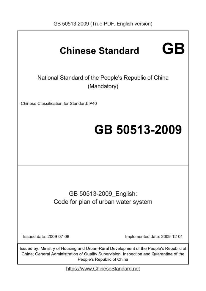 Delivery: <= 7 days. True-PDF full-copy in English will be manually translated and delivered via email. GB 50513-2009: Code for plan of urban water system Status: Valid