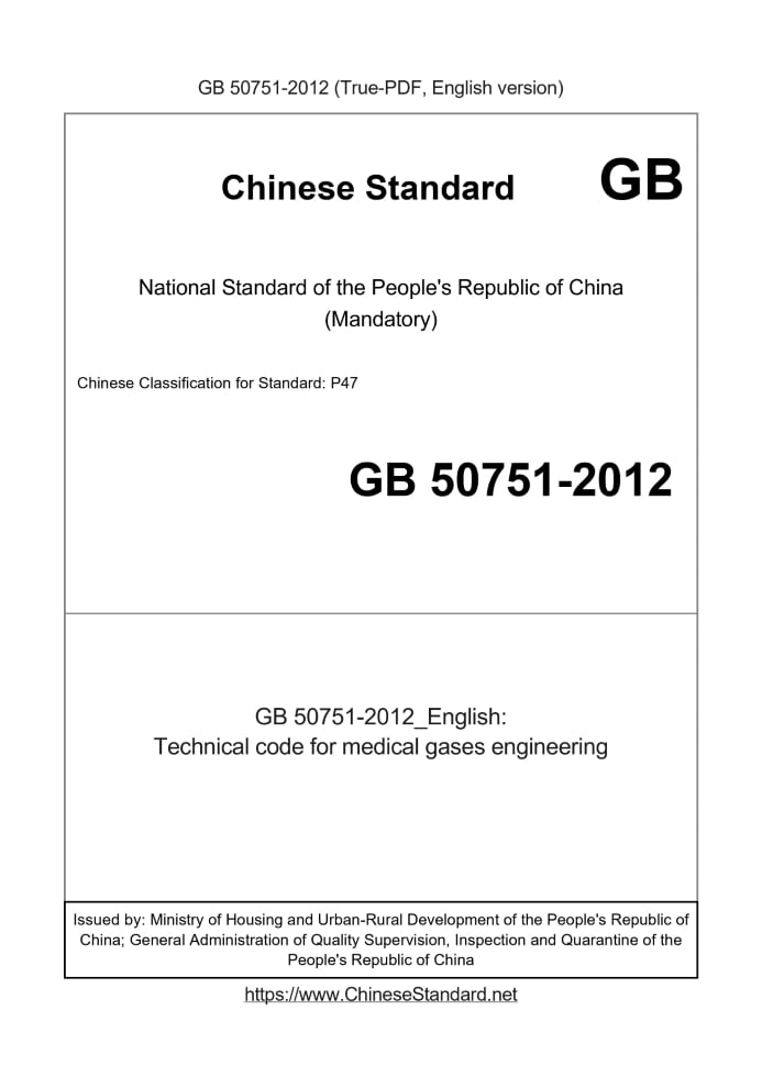 Delivery: <= 9 days. True-PDF full-copy in English will be manually translated and delivered via email. GB 50751-2012: Technical code for medical gases engineering Status: Valid