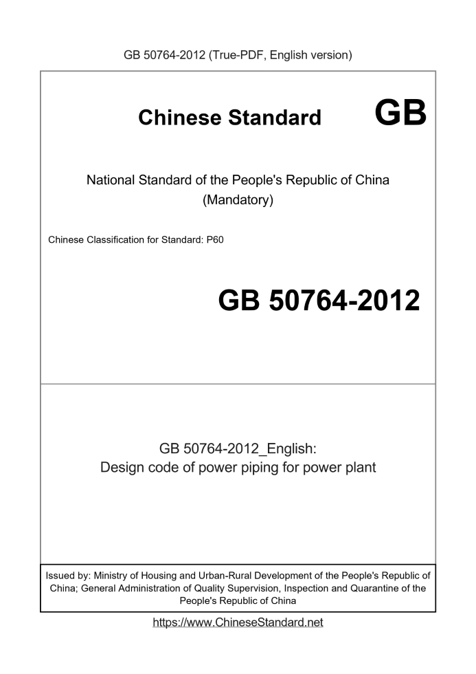 Delivery: <= 20 days. True-PDF full-copy in English will be manually translated and delivered via email. GB 50764-2012: Design code of power piping for power plant Status: Valid