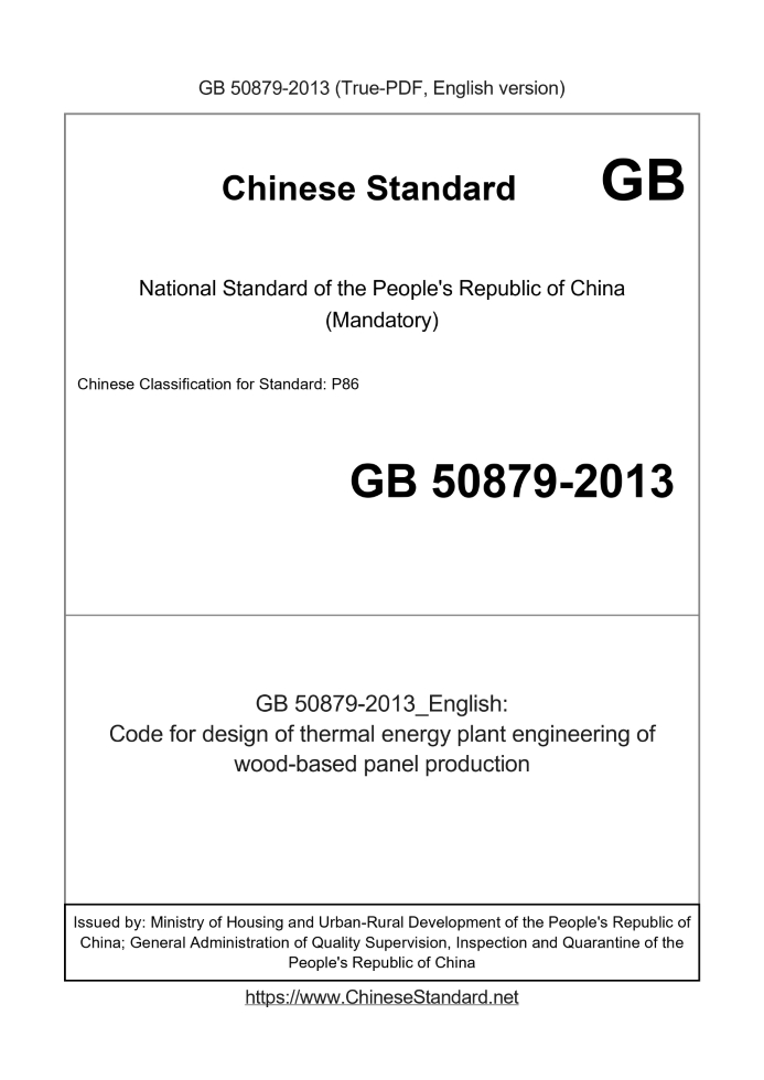 Delivery: <= 7 days. True-PDF full-copy in English will be manually translated and delivered via email. GB 50879-2013: Code for design of thermal energy plant engineering of wood-based panel production Status: Valid