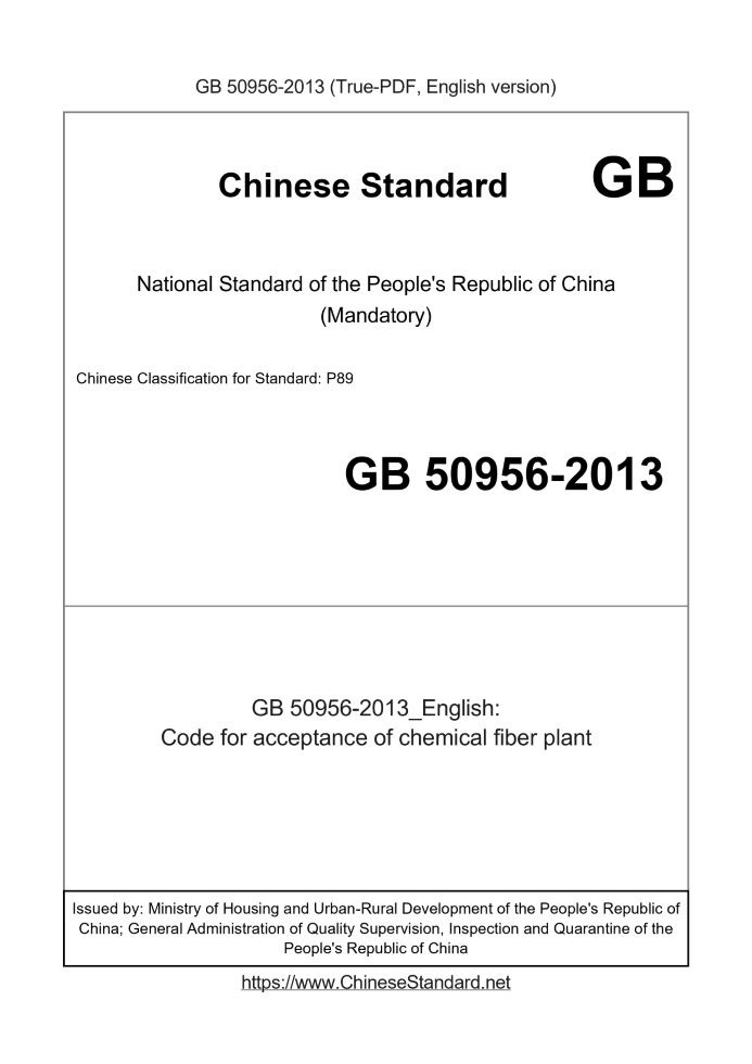 US$1809.00 · In stock · Download in 9 secondsGB 50956-2013: Code for acceptance of chemical fiber plant