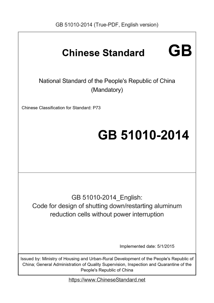 GB 51010-2014: Code for design of shutting down/restarting aluminum reduction cells without power interruption