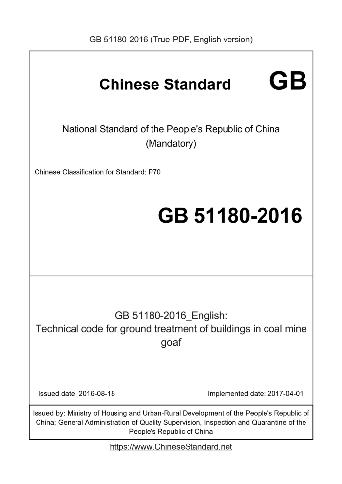 Basic dataStandard ID: GB 51180-2016 (GB51180-2016)Description (Translated English): Technical code for ground treatment of buildings in coal mine goaf Sector / Industry: National Standard Classification of Chinese Standard: P70 Word Count Estimation: 132,172 Date of Issue: 2016-08-18 Date of Implementation: 2017-04-01 Quoted Standard: GB 50003; GB 50007; GB 50009; GB 50010; GB 50021; GB 50026; GB 50202; GB 50204; GB/T 50266; GB 50330; GB 50592; GB 50778; GB 51044; JGJ 8; JGJ 79; JGJ 94; JGJ 106 Regulation (derived from): Ministry of Housing and Urban - Rural Development Notice No.1281 of 2016 Issuing agency(ies): Ministry of Housing and Urban-Rural Development of the People's Republic of China; General Administration of Quality Supervision, Inspection and Quarantine of the People's Republic of China Summary: This standard is applicable to the design, construction and quality inspection of the foundation and construction of the industrial and civil construction of the existing coal mine mined-out area. Tips & Frequently Asked Questions:Question 1: How long will the true-PDF of GB 51180-2016_English be delivered?Answer: Upon your order, we will start to translate GB 51180-2016_English as soon as possible, and keep you informed of the progress. The lead time is typically 1 ~ 3 working days. The lengthier the document the longer the lead time.Question 2: Can I share the purchased PDF of GB 51180-2016_English with my colleagues?Answer: Yes. The purchased PDF of GB 51180-2016_English will be deemed to be sold to your employer/organization who actually pays for it, including your colleagues and your employer's intranet.Question 3: Does the price include tax/VAT?Answer: Yes. Our tax invoice, downloaded/delivered in 9 seconds, includes all tax/VAT and complies with 100+ countries' tax regulations (tax exempted in 100+ countries) -- See Avoidance of Double Taxation Agreements (DTAs): List of DTAs signed between Singapore and 100+ countriesQuestion 4: Do you accept my currency other than USD?Answer: Yes. If you need your currency to be printed on the invoice, please write an email to Sales@ChineseStandard.net. In 2 working-hours, we will create a special link for you to pay in any currencies. Otherwise, follow the normal steps: Add to Cart -- Checkout -- Select your currency to pay. |