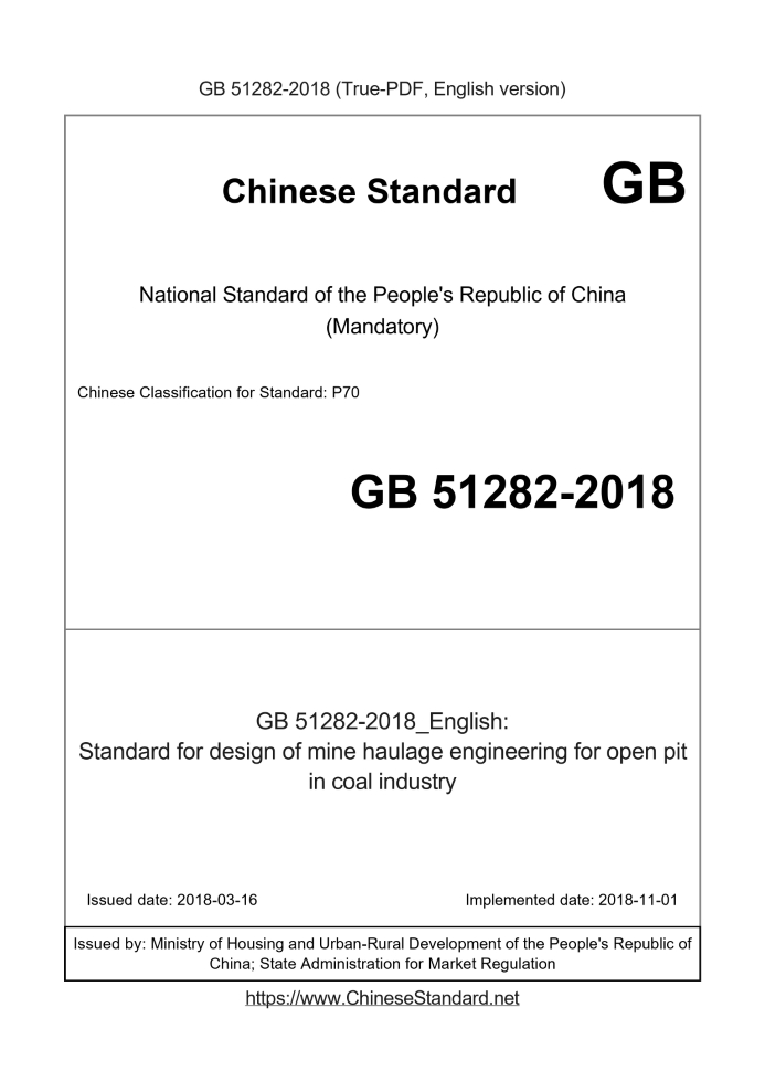 Delivery: <= 10 days. True-PDF full-copy in English will be manually translated and delivered via email. GB 51282-2018: Standard for design of mine haulage engineering for open pit in coal industry Status: Valid