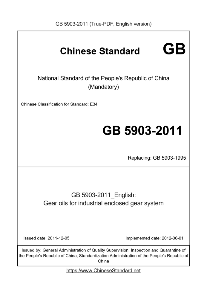 GB 5903-2011: Gear oils for industrial enclosed gear system