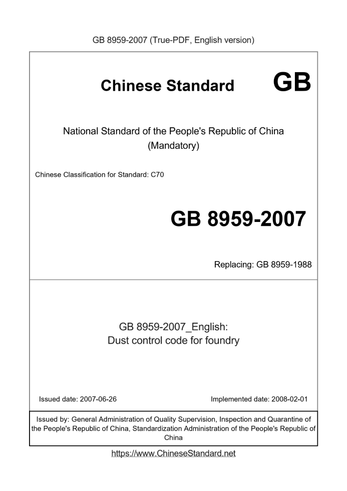 Standard ID: GB 8959-2007 (GB8959-2007)Description (Translated English): Dust control code for foundry