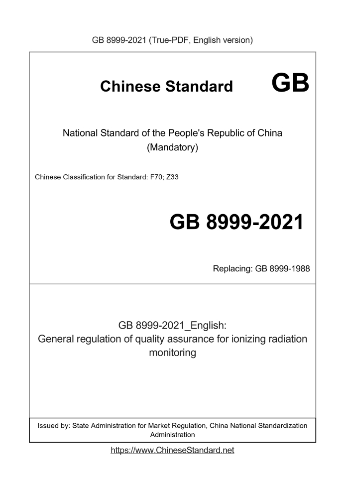 Delivery: <= 3 days. True-PDF full-copy in English will be manually translated and delivered via email. GB 8999-2021: General regulation of quality assurance for ionizing radiation monitoring Status: Valid GB 8999: Historical versions