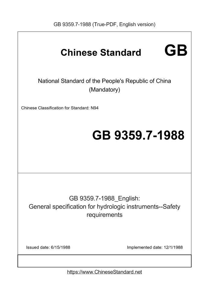 Delivery: <= 3 days. True-PDF full-copy in English will be manually translated and delivered via email. GB 9359.7-1988: General specification for hydrologic instruments--Safety requirements Status: Obsolete