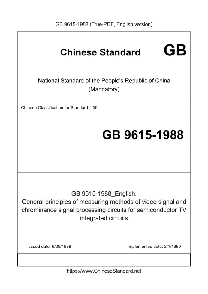 Delivery: <= 6 days. True-PDF full-copy in English will be manually translated and delivered via email. GB 9615-1988: General principles of measuring methods of video signal and chrominance signal processing circuits for semiconductor TV integrated circuits Status: Obsolete