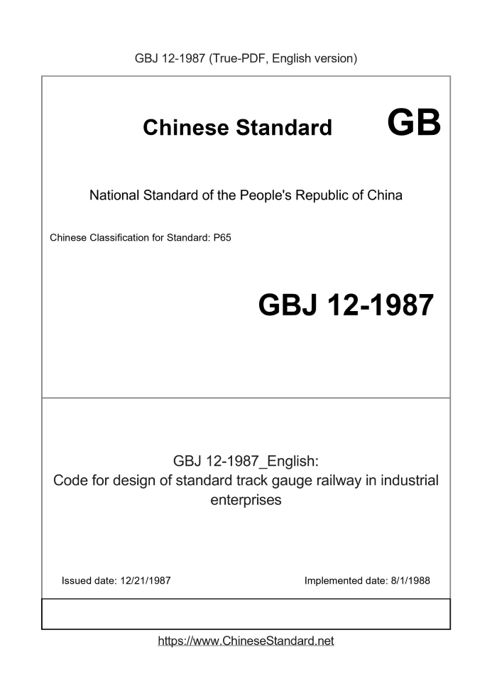 GBJ 12-1987RFQ ASK 3 days Code for design of standard track gauge railway in industrial enterprises Obsolete