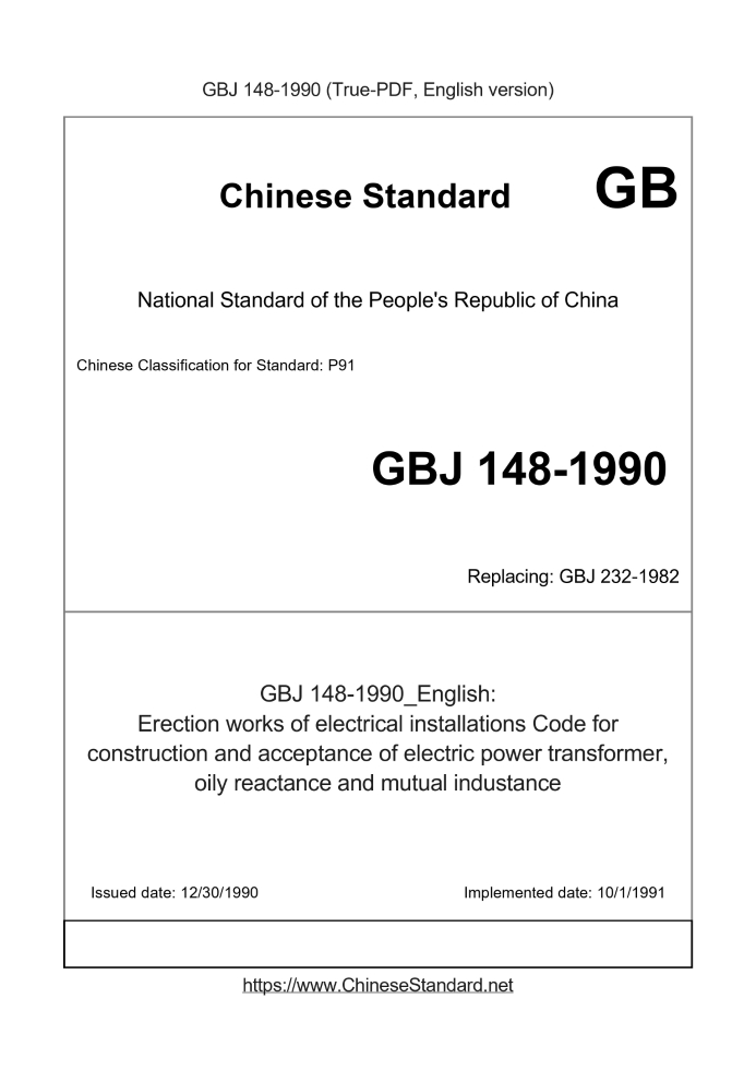 GBJ 148-1990RFQ ASK 9 days Erection works of electrical installations Code for construction and acceptance of electric power transformer, oily reactance and mutual industance Obsolete
