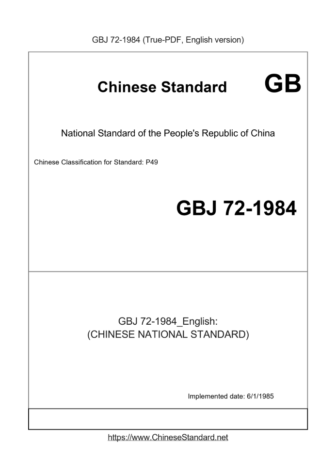 GBJ 72-1984RFQ ASK 9 days (CHINESE NATIONAL STANDARD) Obsolete
