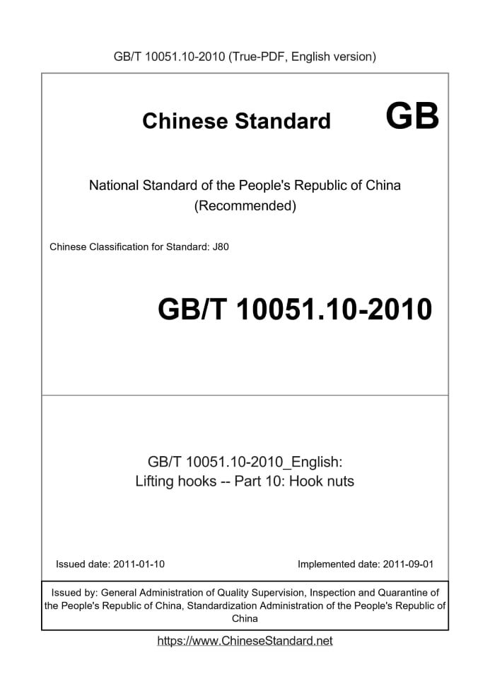 Delivery: <= 3 days. True-PDF full-copy in English will be manually translated and delivered via email. GB/T 10051.10-2010: Lifting hooks -- Part 10: Hook nuts Status: Valid