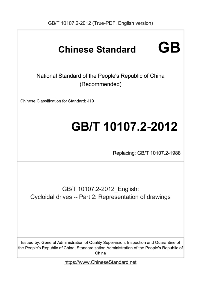 Delivery: <= 3 days. True-PDF full-copy in English will be manually translated and delivered via email. GB/T 10107.2-2012: Cycloidal drives -- Part 2: Representation of drawings Status: Valid GB/T 10107.2: Historical versions