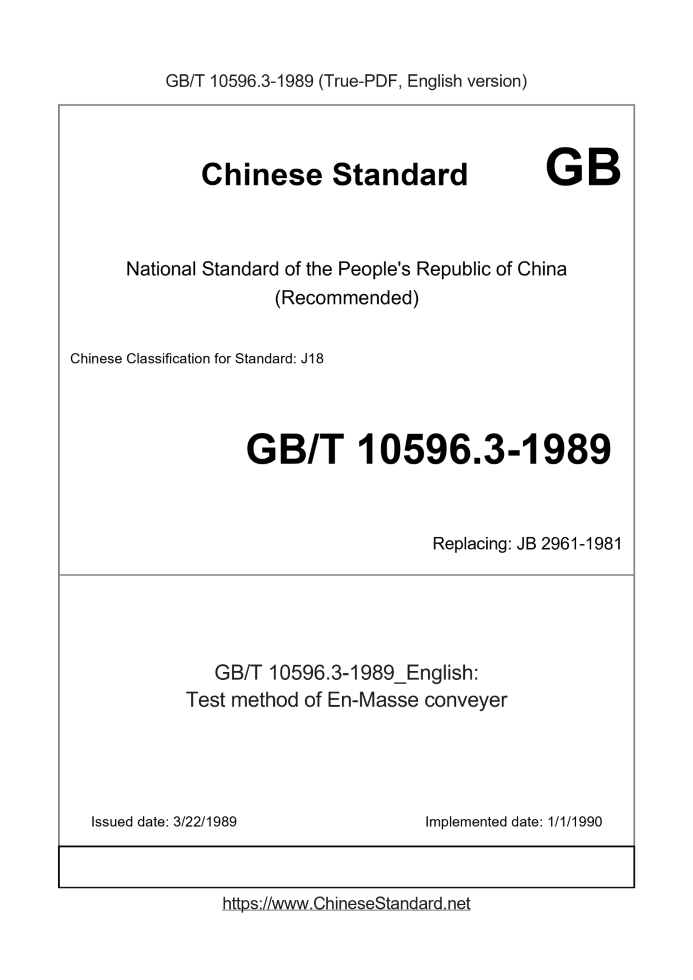Delivery: <= 3 days. True-PDF full-copy in English will be manually translated and delivered via email. GB/T 10596.3-1989: Test method of En-Masse conveyer Status: Obsolete