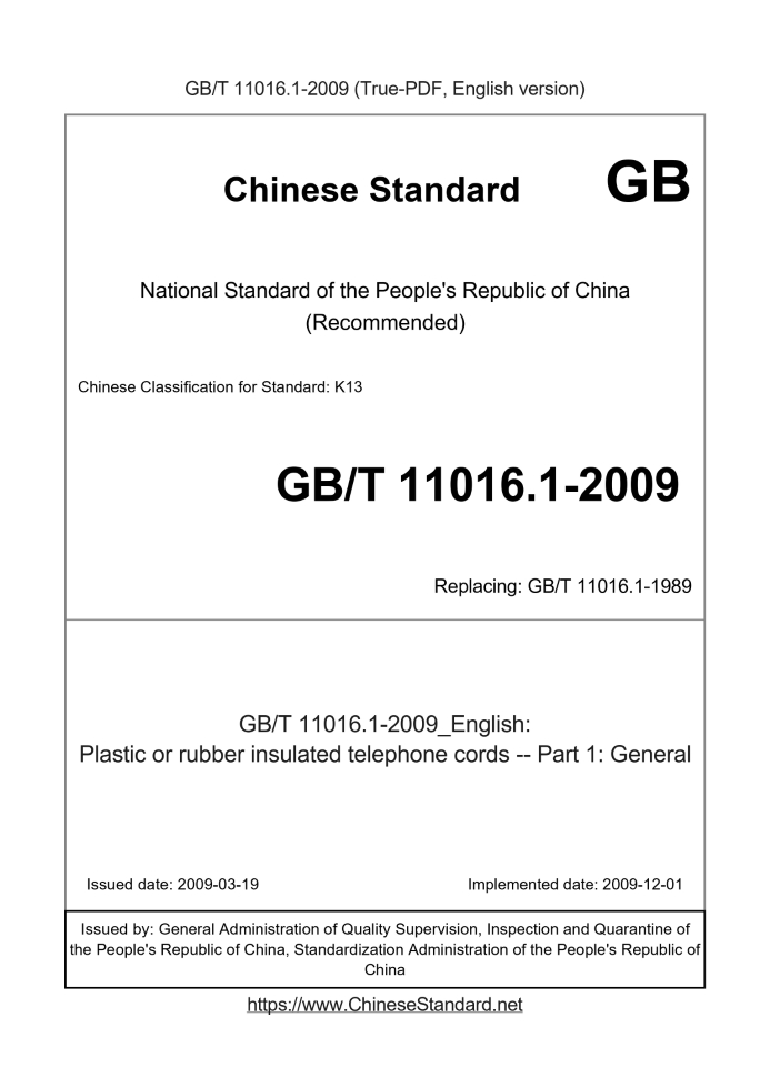 Delivery: <= 3 days. True-PDF full-copy in English will be manually translated and delivered via email. GB/T 11016.1-2009: Plastic or rubber insulated telephone cords -- Part 1: General Status: Valid GB/T 11016.1: Historical versions