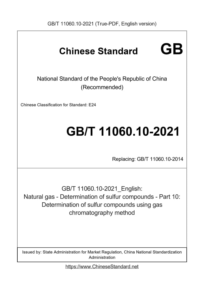 Delivery: <= 7 days. True-PDF full-copy in English will be manually translated and delivered via email. GB/T 11060.10-2021: Natural gas - Determination of sulfur compounds - Part 10: Determination of sulfur compounds using gas chromatography method Status: Valid GB/T 11060.10: Historical versions